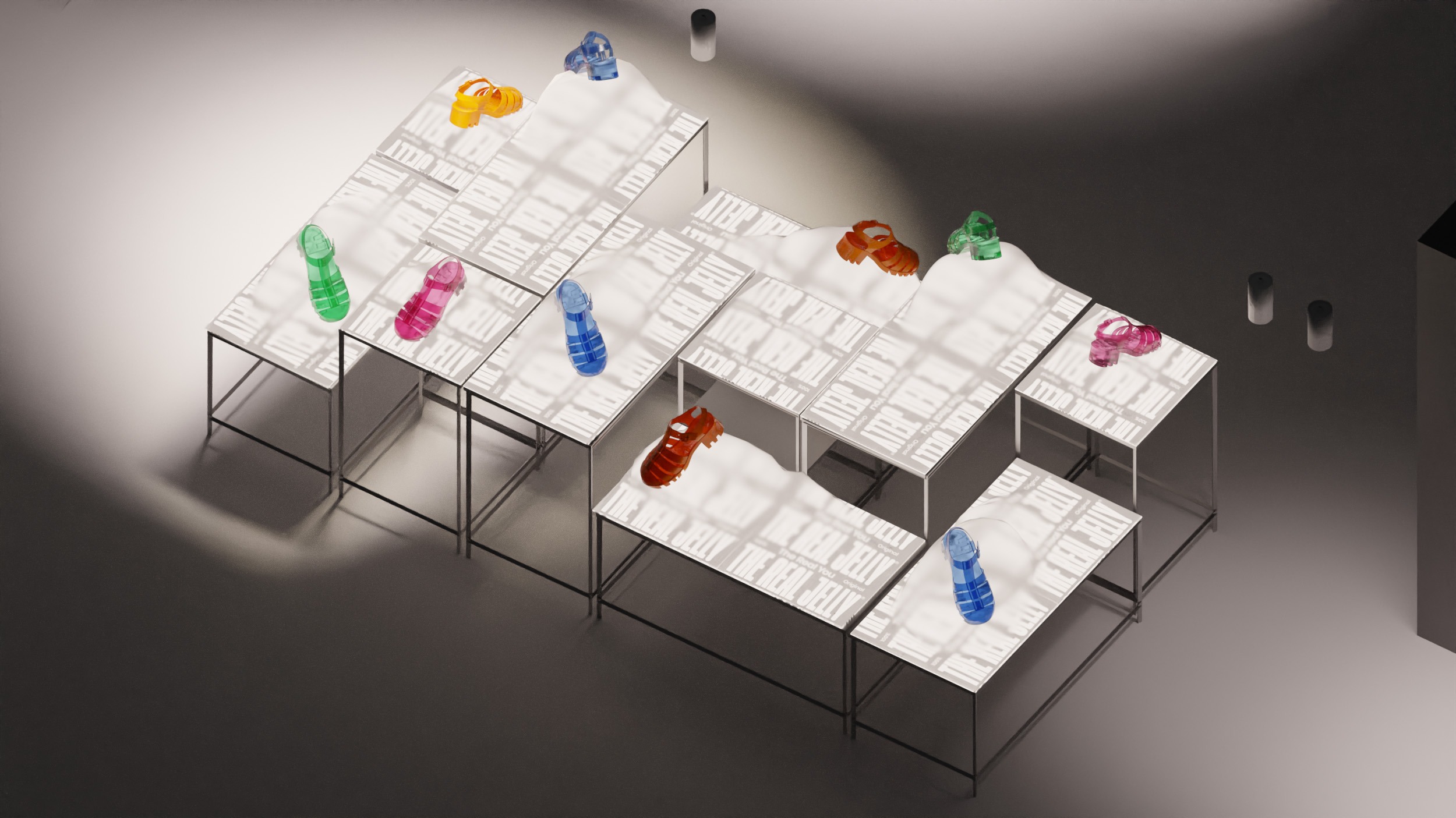 CGI as concept & scenography proposal for Melissa's summer 2023 pop up store taking place at Galerie Lafayette, Paris. Art direction by Hugo Elkaïm & Camille Roquet.